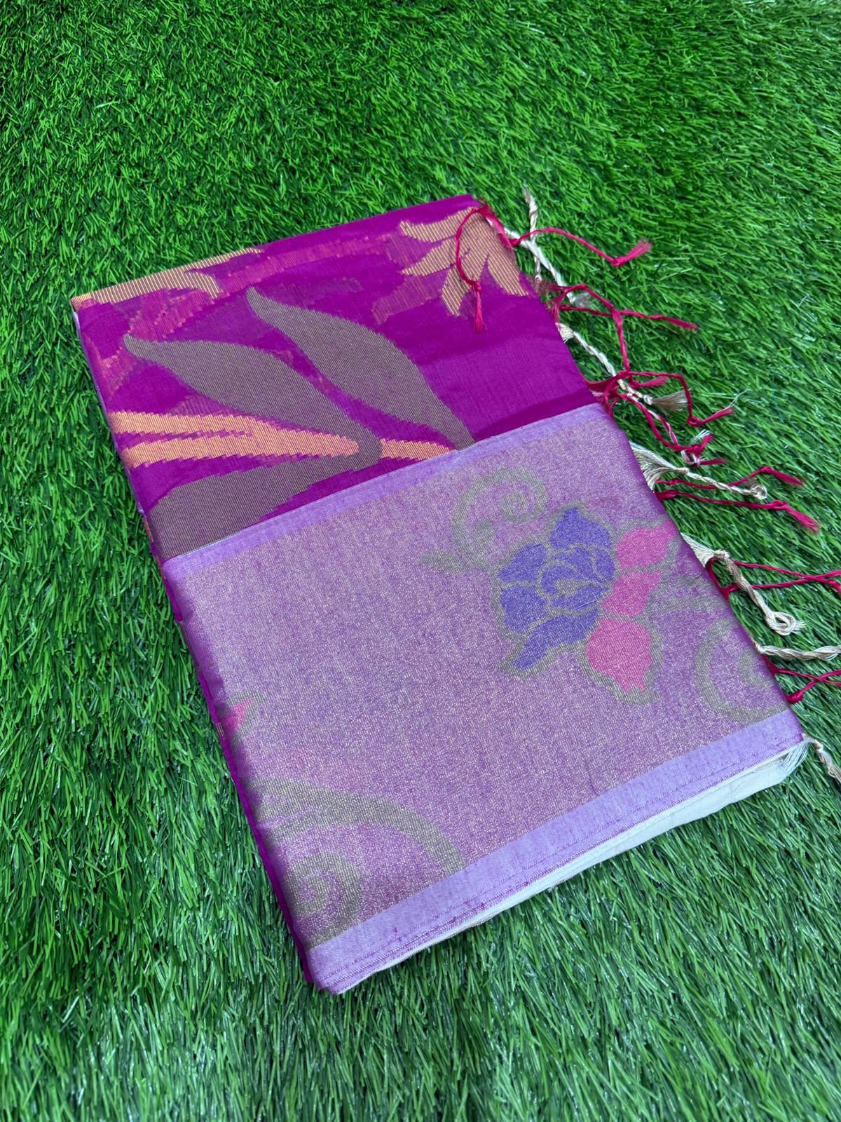 Pochampally Silk Cotton Saree – Violet