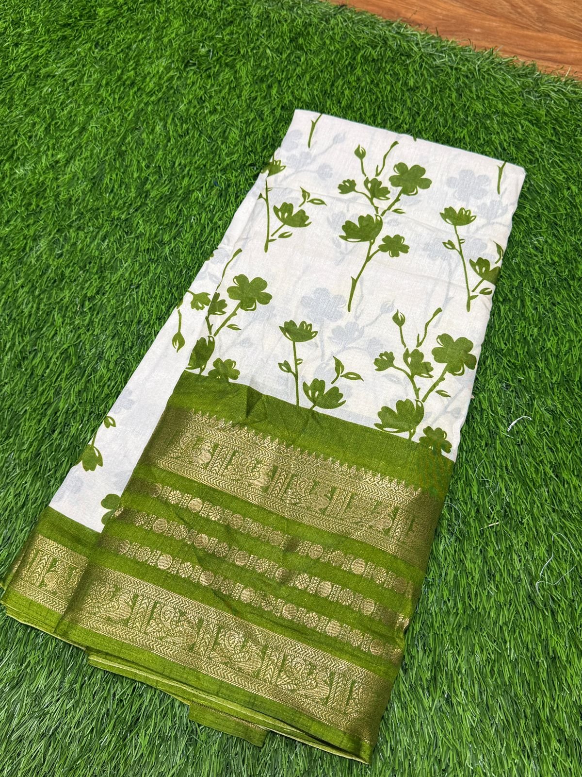 Binny Semi Silk Saree – Whiteberry – White with Green