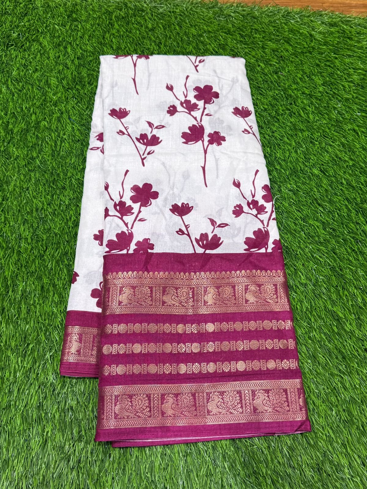 Binny Semi Silk Saree – Whiteberry – White with Violet