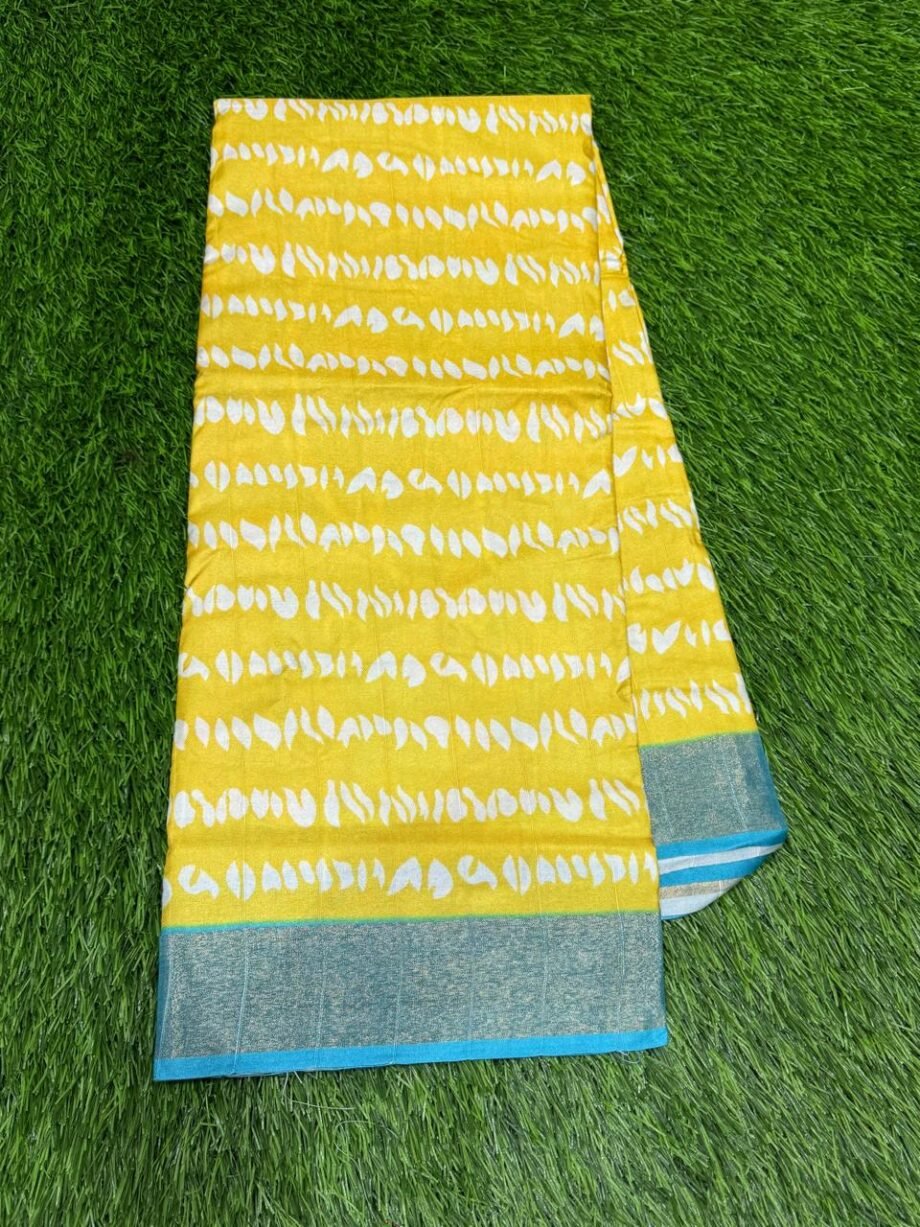 Kalamkari Dupion Saree – Yellow (Blue Border)