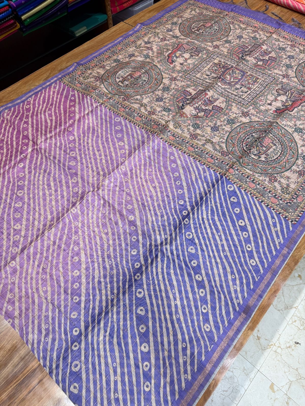 Chanderi Cotton Saree – Lehariya, Bandhini and Madhubani – 6