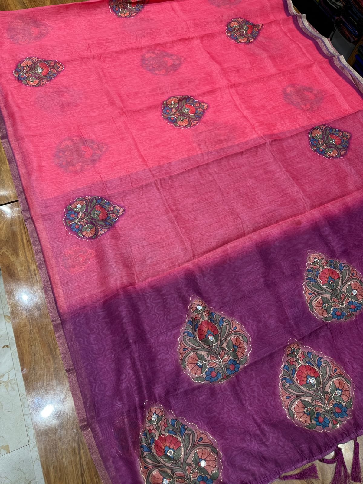 Be the first to review “Jari Embroidery Chanderi Cotton Saree – 2”