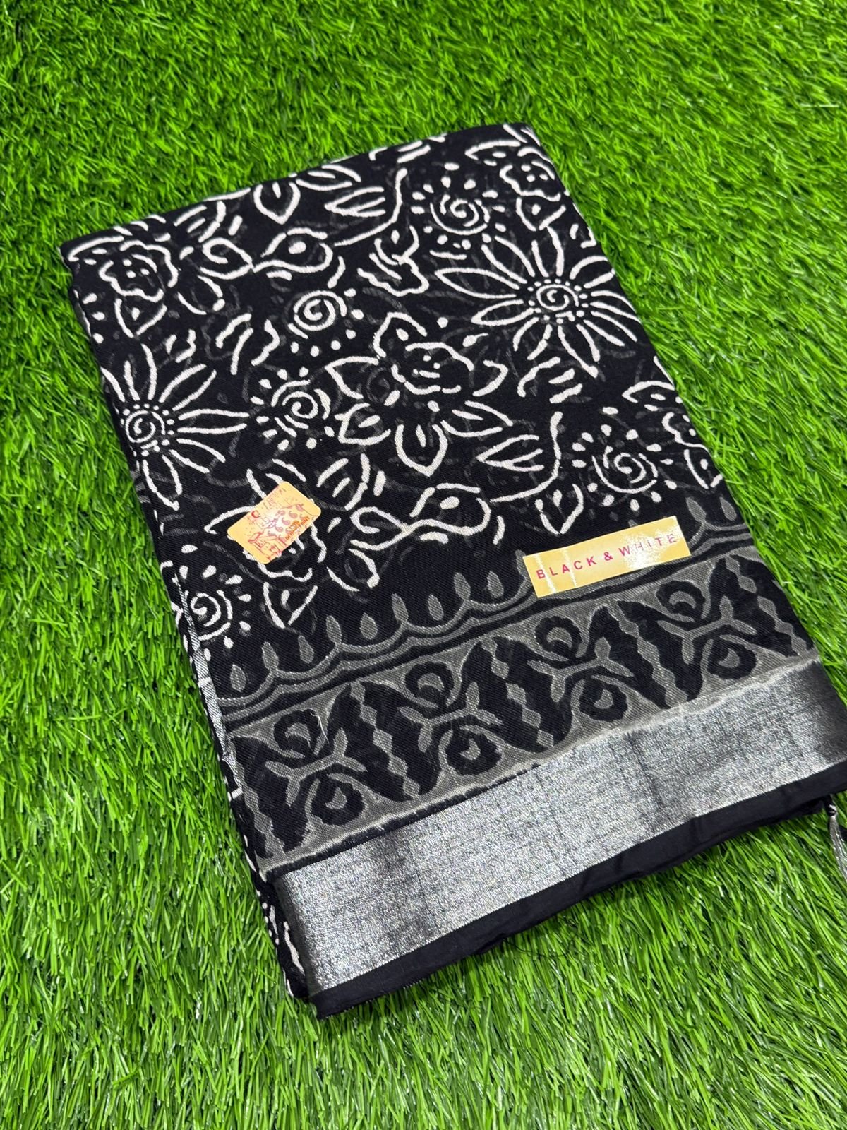 Be the first to review “Block Print Linen Saree – Black and White – 2”