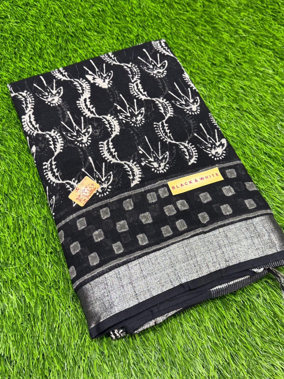 Be the first to review “Block Print Linen Saree – Black and White – 6”