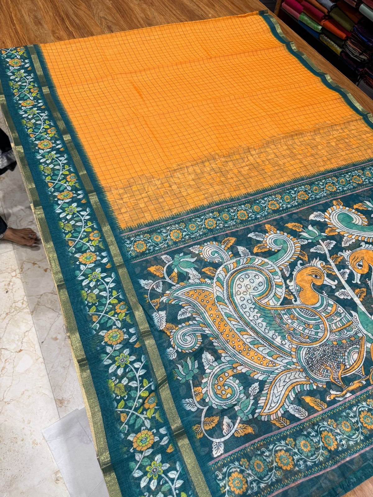 Kalamkari Linen Cotton saree with Rettapetta Borders – 1