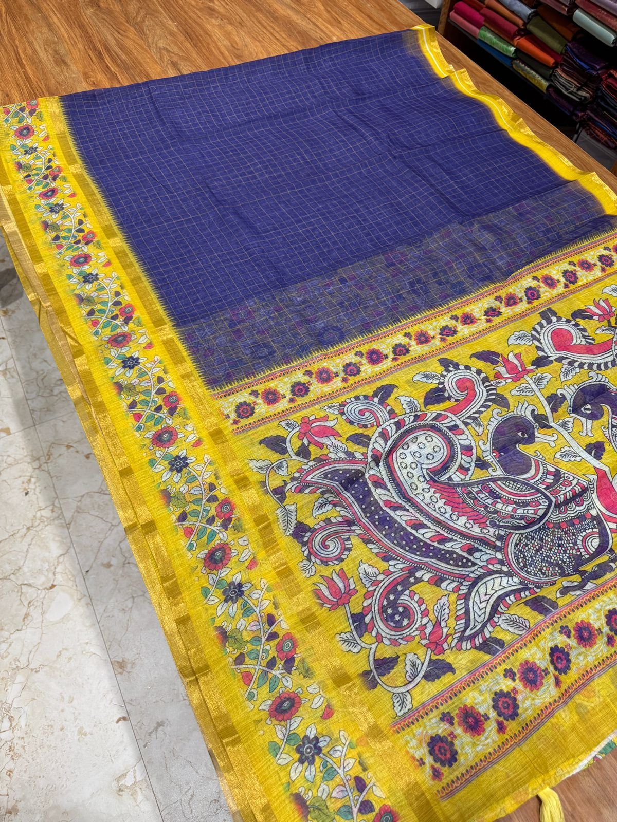 Be the first to review “Kalamkari Linen Cotton saree with Rettapetta Borders – 5”
