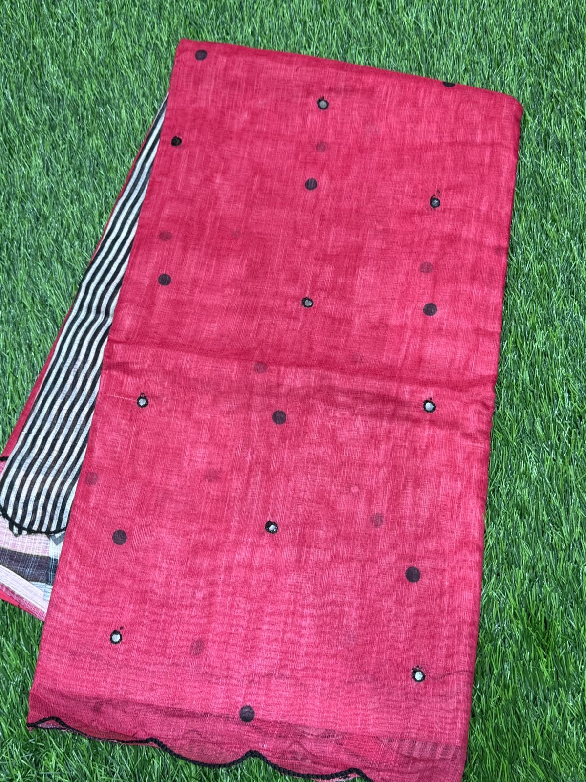 Linen Cotton Saree – Mirror Work and Scalp Border – 4