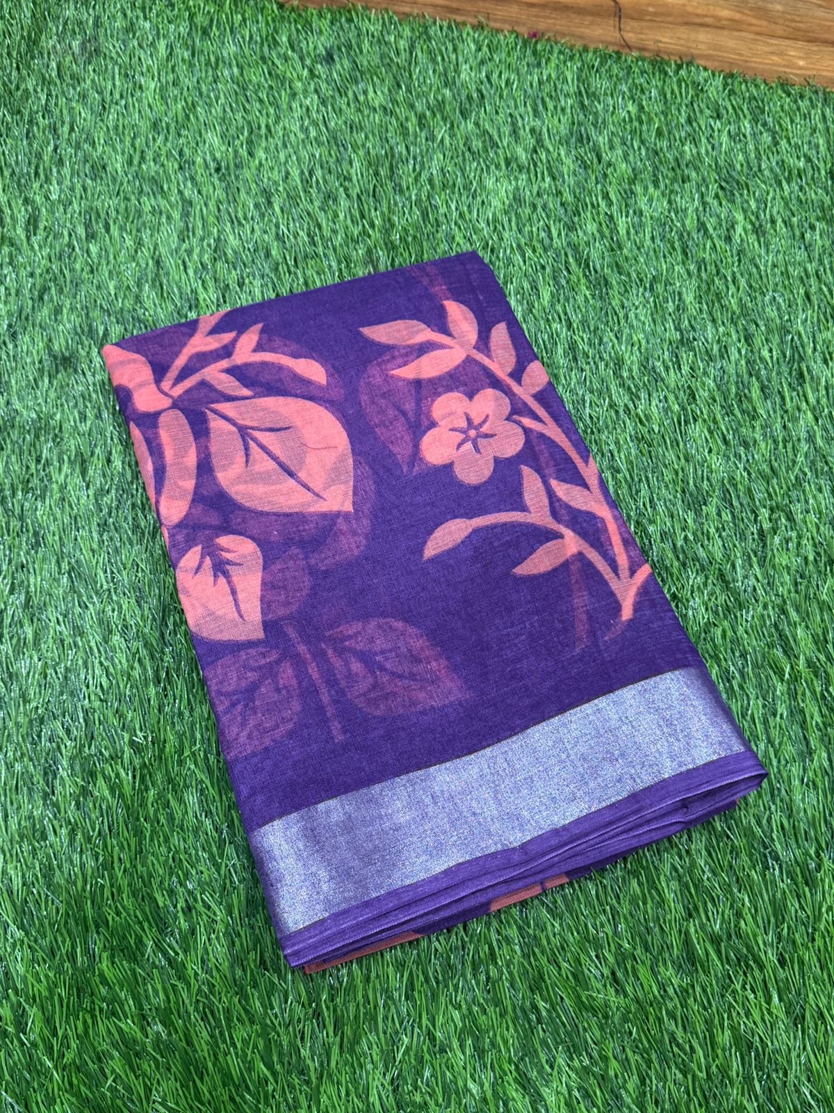 Linen Cotton Saree – Rose Flower Design – 1