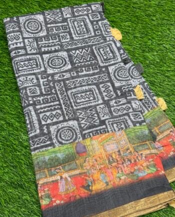Be the first to review “Linen Cotton Saree with Allover Zari – 4”