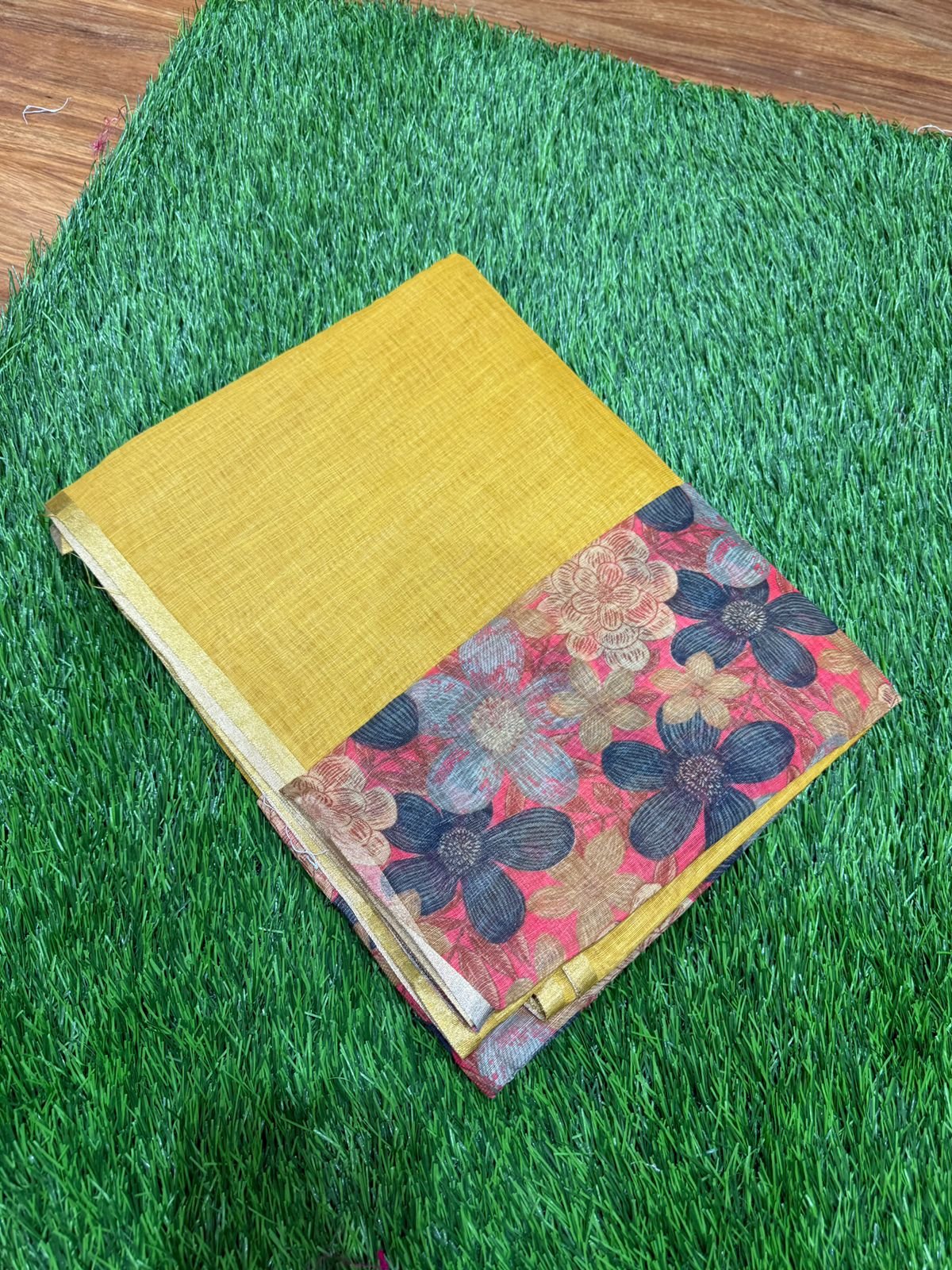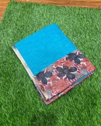 Be the first to review “Premium Linen Cotton Saree – Floral Style Pallu and Blouse – 2”