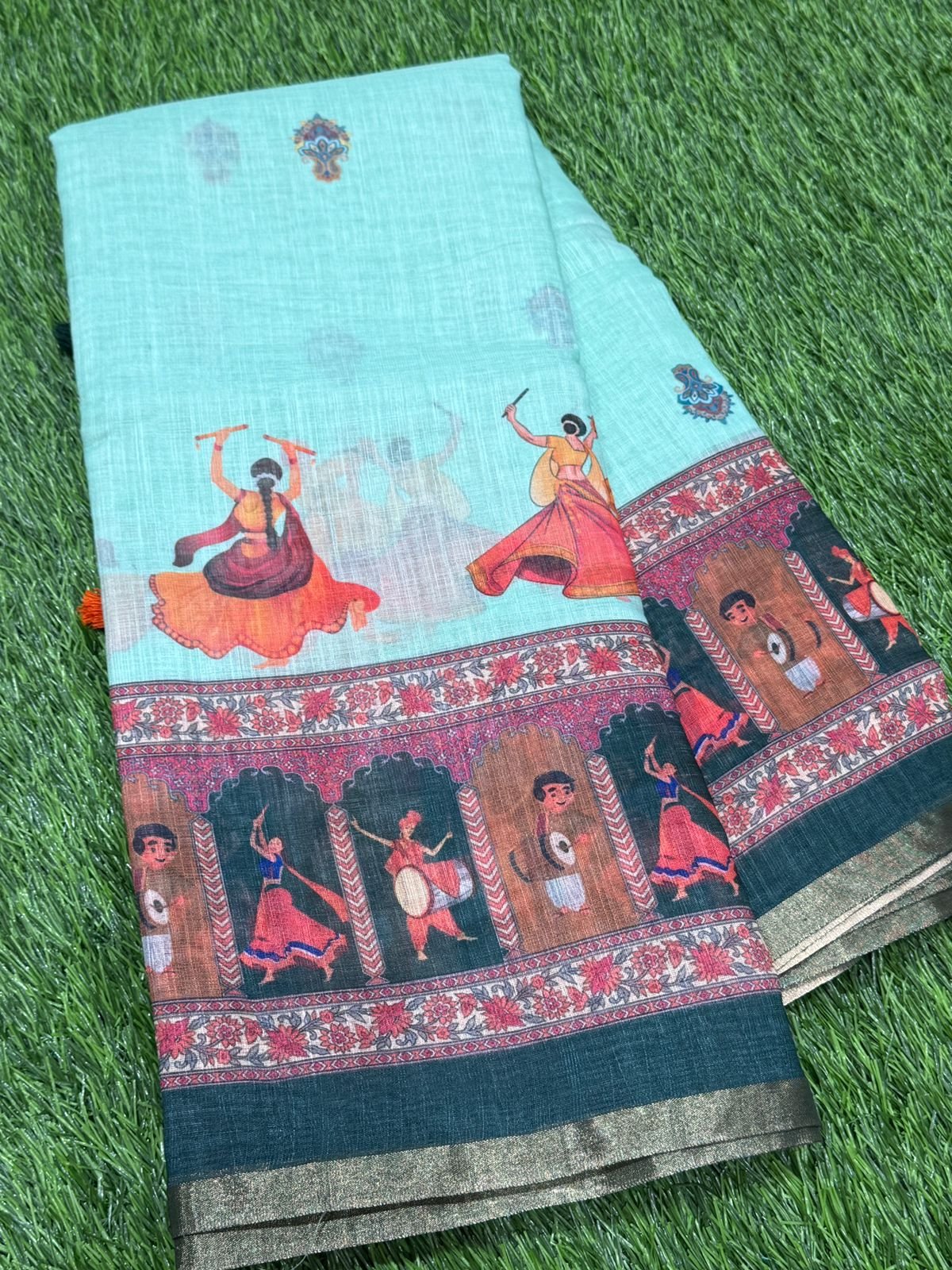 Premium Linen Cotton Saree – Mint Green