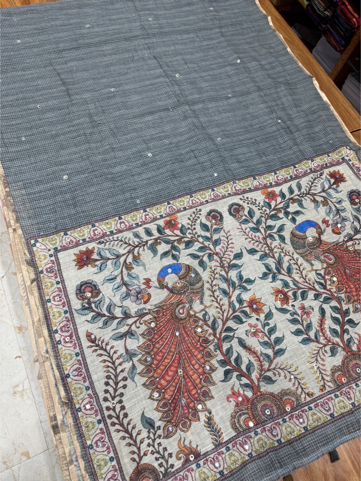 Premium Linen Cotton Saree – Mirror Work – 2