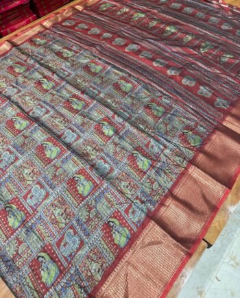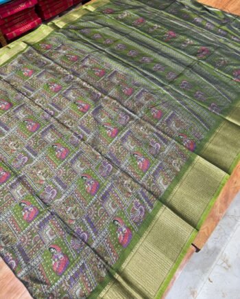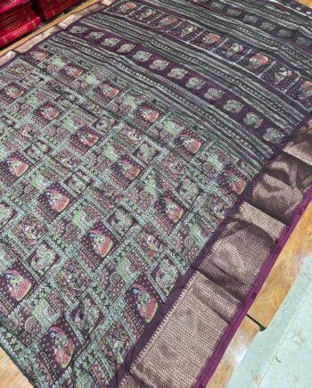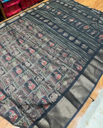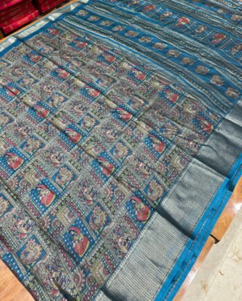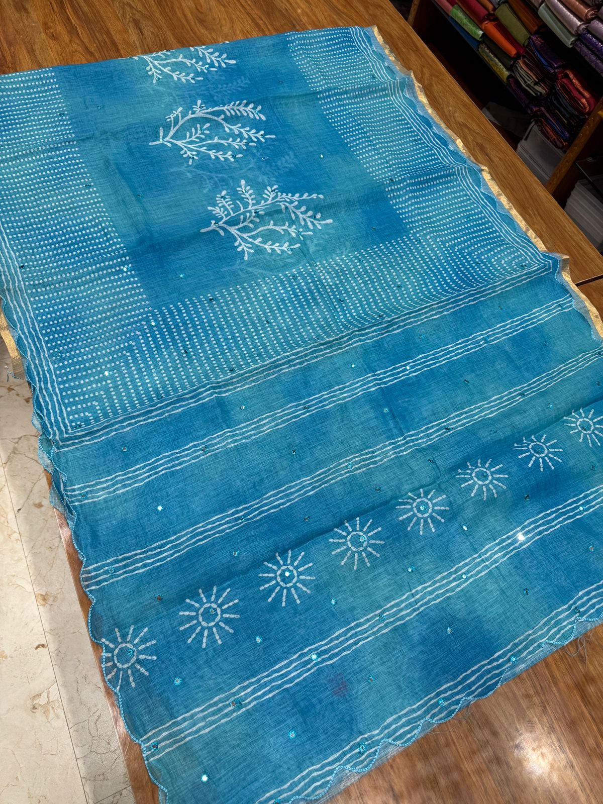 Premium Linen Cotton Saree – Mirror work and scalp border – Blue Tye and Dye