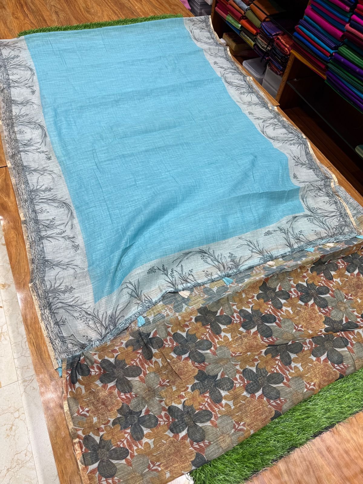 Premium Linen Cotton Saree – Pastel Shades with Floral Blouse – 2