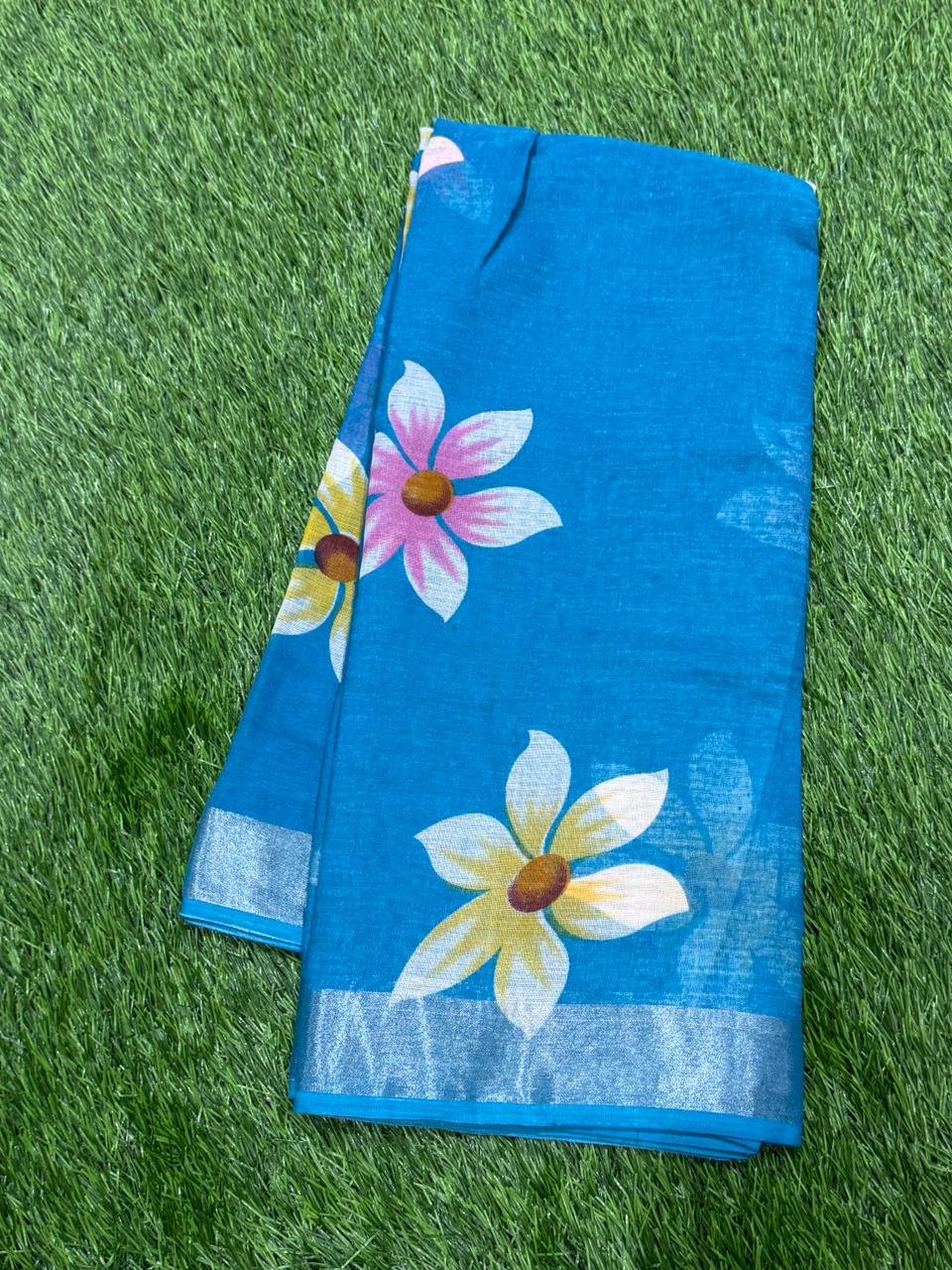 Budget Linen Cotton Saree – March Year End Sale – Sky Blue