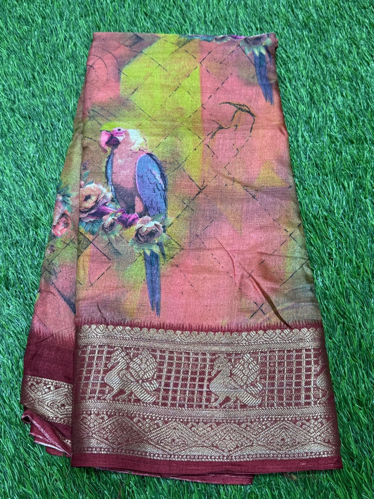 Dola Semi Silk Saree – March Year End Sale – Parrot Design – 2