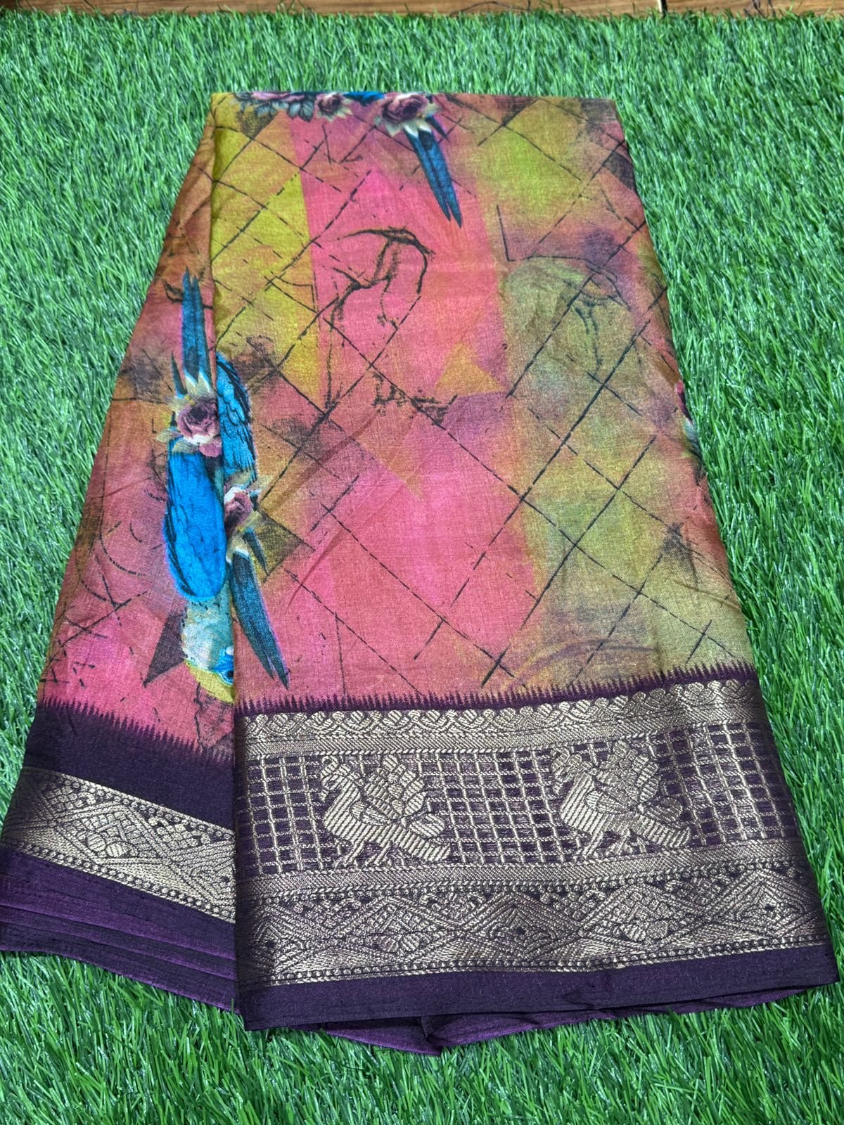 Dola Semi Silk Saree – March Year End Sale – Parrot Design – 6