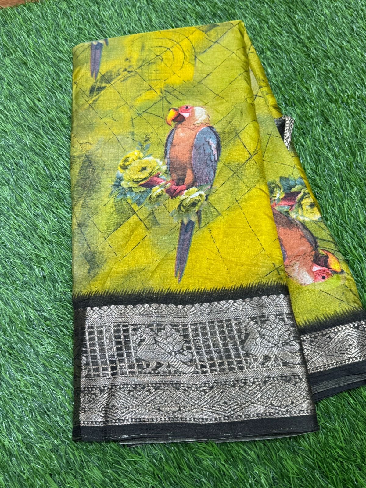Dola Semi Silk Saree – March Year End Sale – Parrot Design – 7