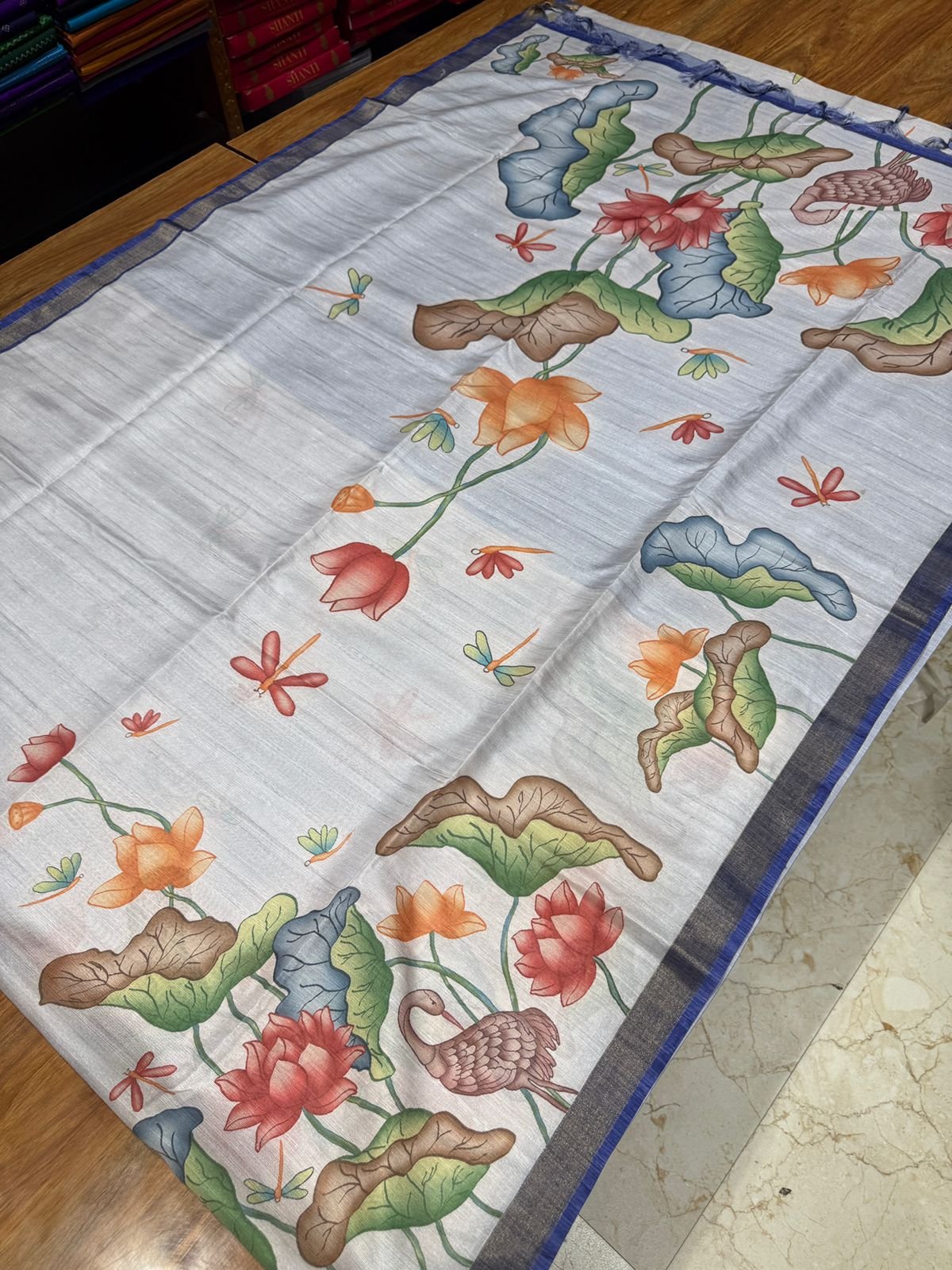Semi Dupion Saree – Lotus and Bird Design – Clearance Sale – 2