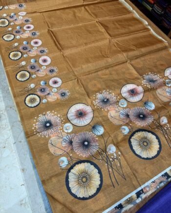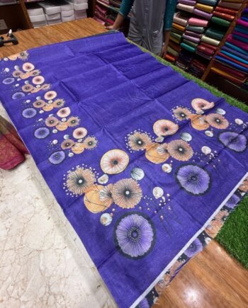 Linen Cotton Saree – Giraffe Design – Ice Blue
