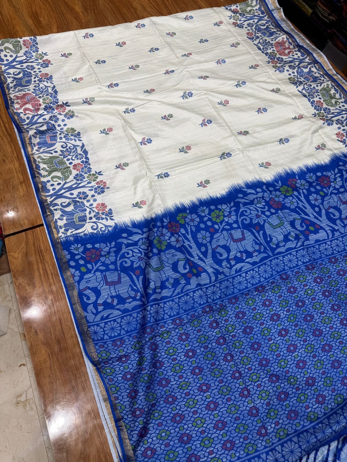 Printed Semi Tussar Saree – Elephant Design – 6