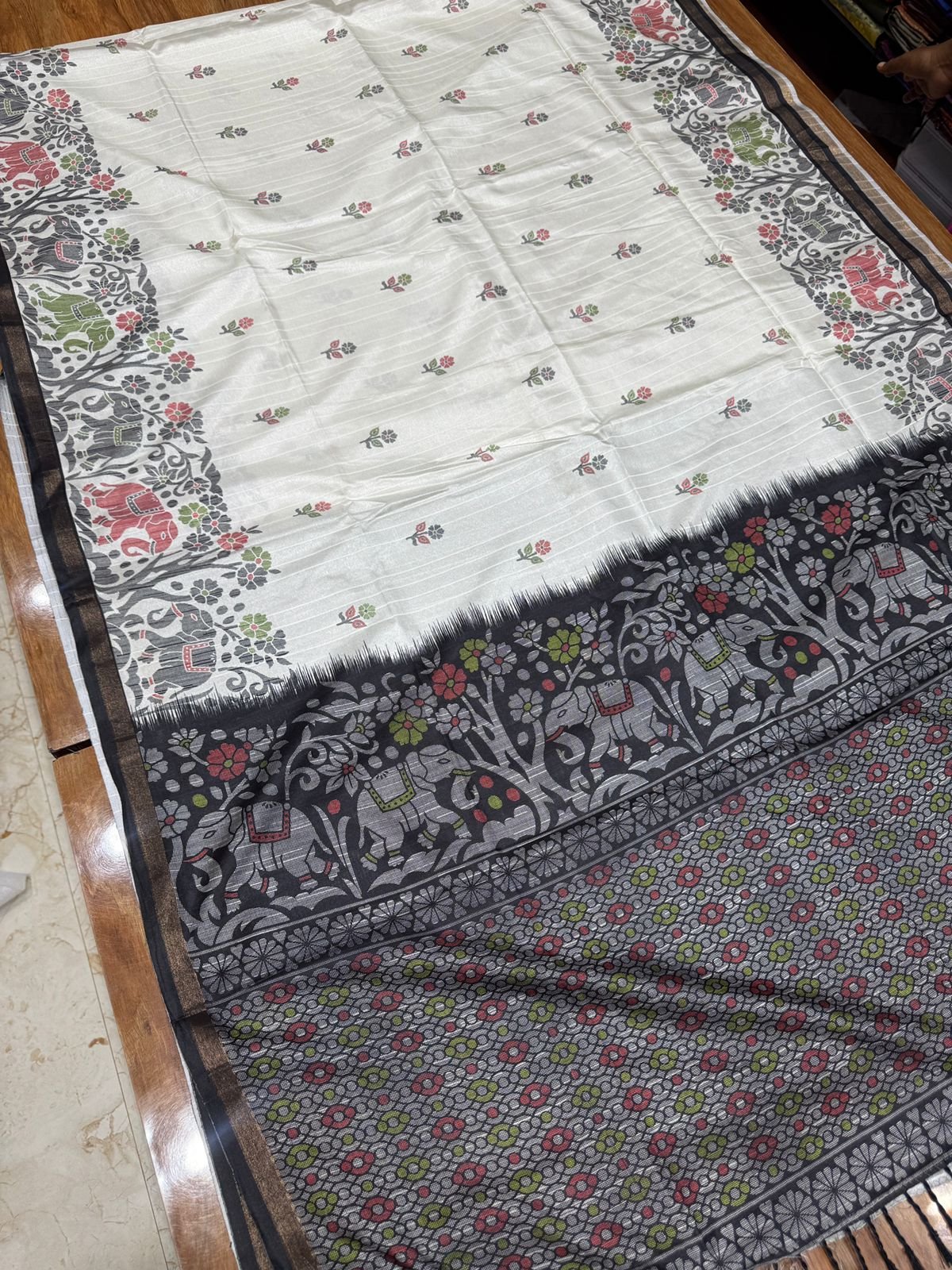 Printed Semi Tussar Saree – Elephant Design – 7